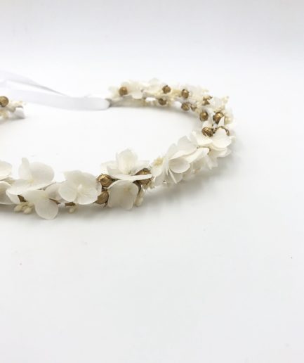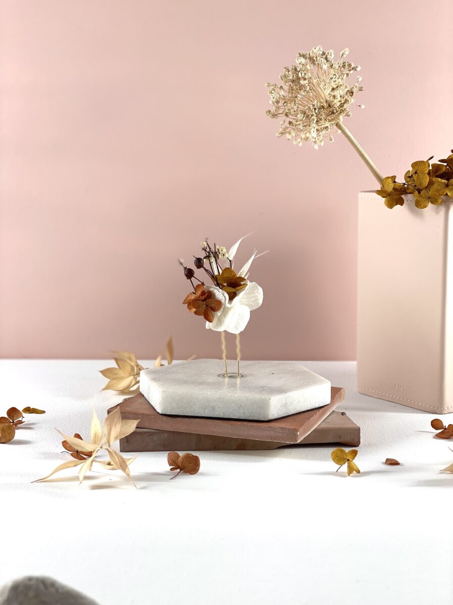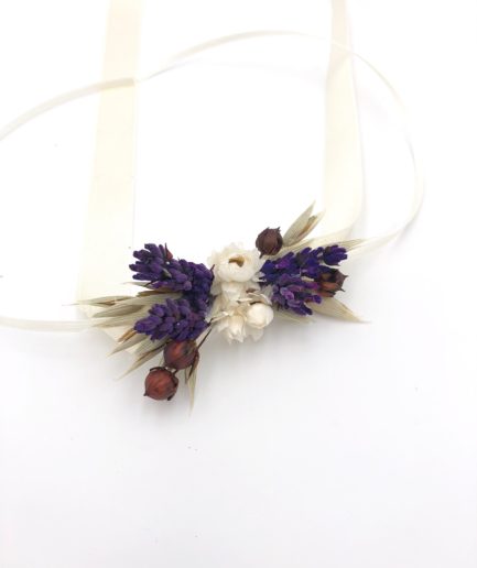 - Fleurs stabilisées naturelles (hortensia mini, mini-gypsophile, limonium) et séchées (lin, avoine..)