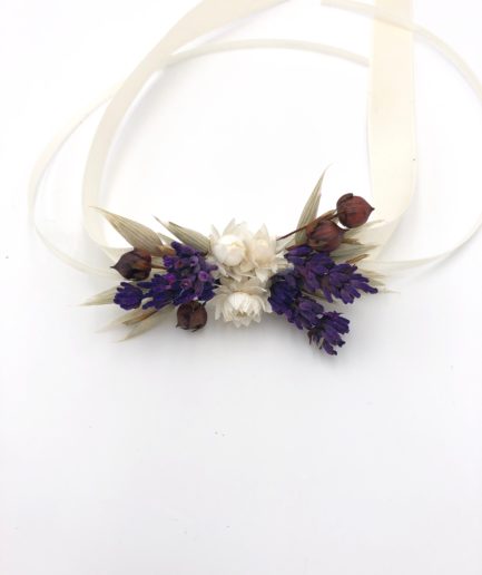 Comme nos autres accessoires pour la mariée, ce peigne se compose de fleurs 100% naturelles durables, stabilisées et séchées, qui offrent des avantages en matière de conservation, allant de plusieurs mois à plusieurs années. Pratique pour commander quelques mois avant, et pour la conserver ensuite en souvenir des années.