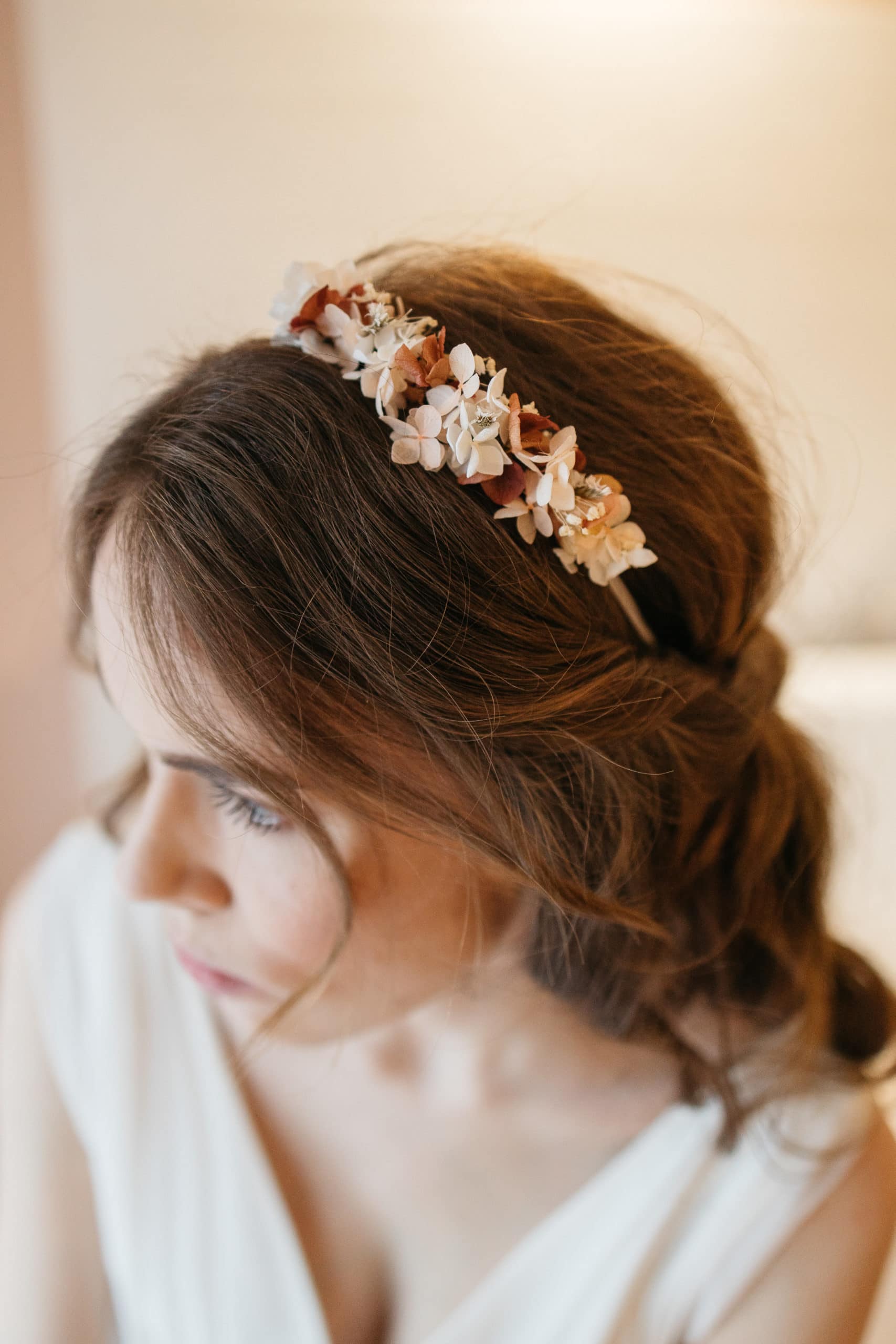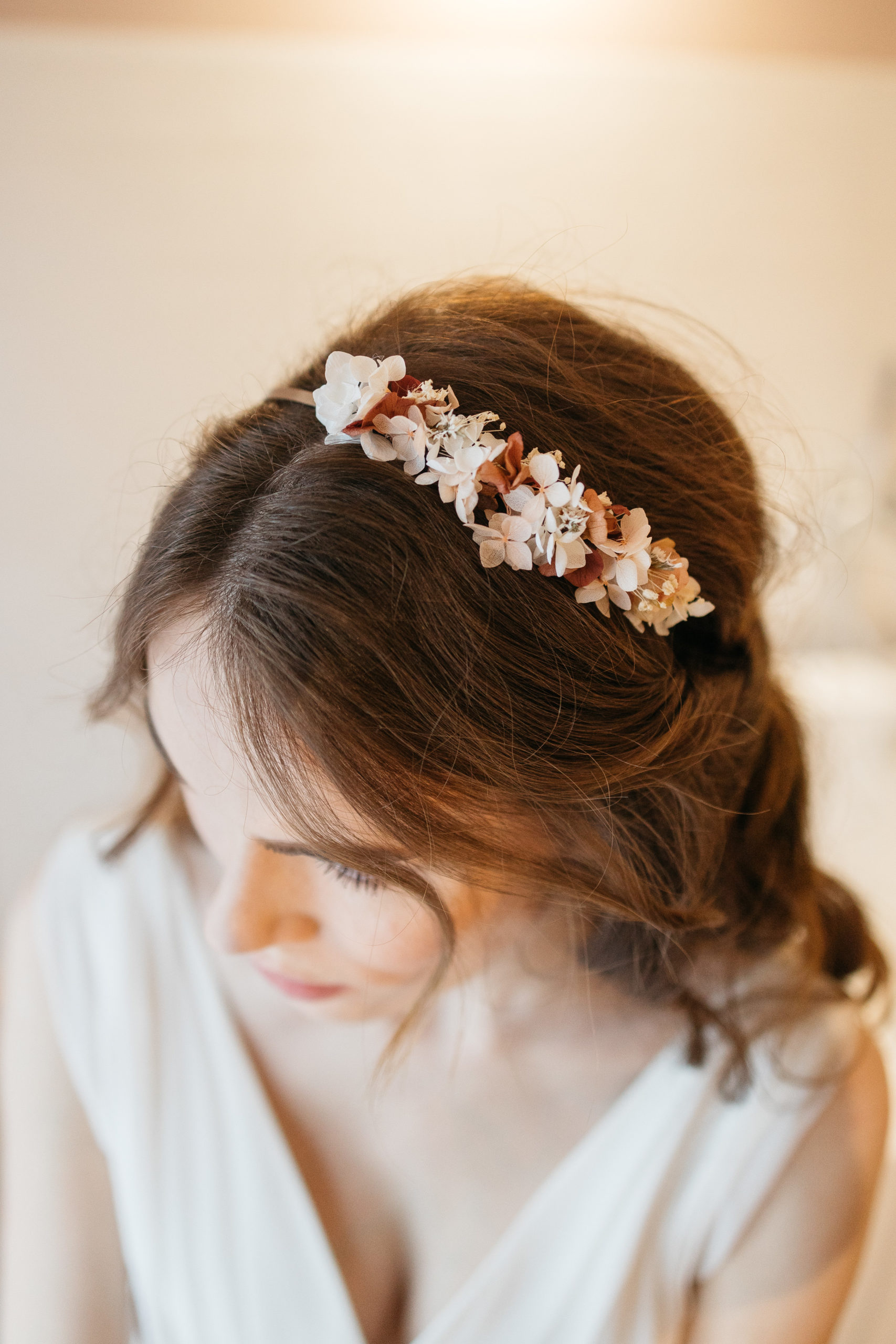 Comme nos autres accessoires pour la mariée, ce serre-tête se compose de fleurs 100% naturelles durables, stabilisées et séchées, qui offrent des avantages en matière de conservation, allant de plusieurs mois à plusieurs années. Pratique pour commander quelques mois avant, et pour le conserver ensuite en souvenir des années.