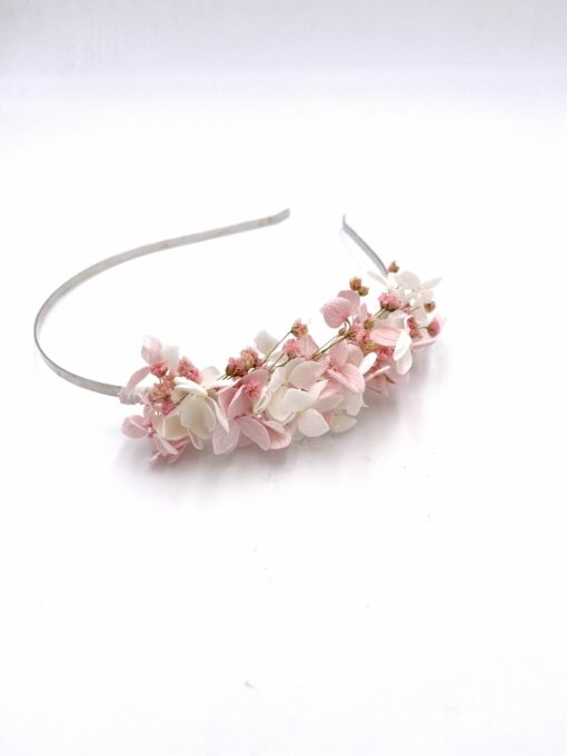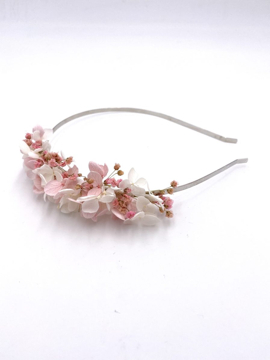 - Serre-tête en fleurs naturelles stabilisées (gypsophile, hortensia, broom)