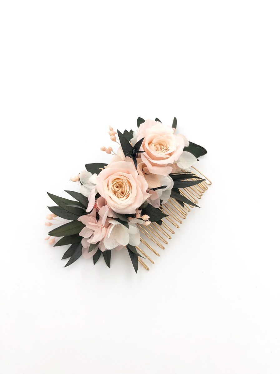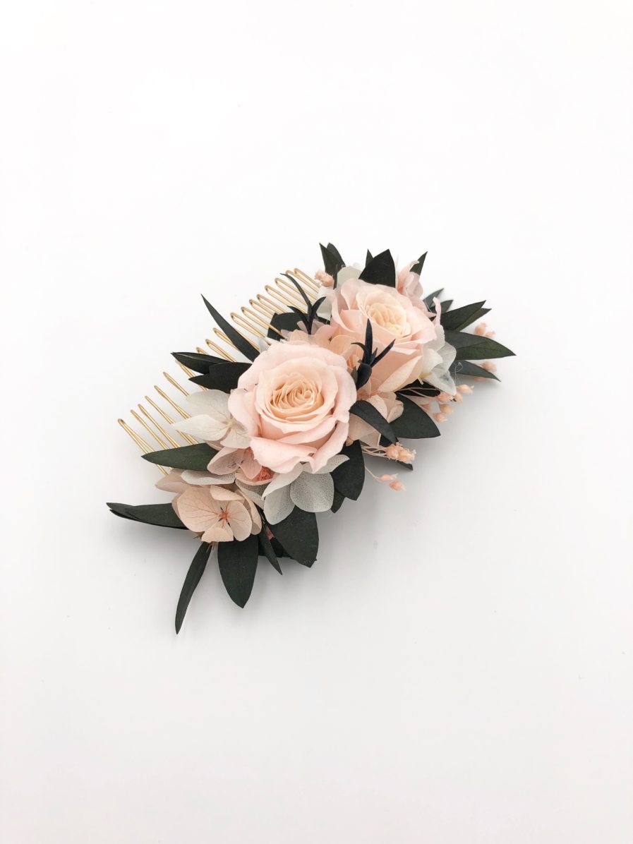 Le peigne de fleurs Lima se fixe facilement et convient à différents types de coiffures, aussi bien aux chignons qu’aux cheveux détachés.
