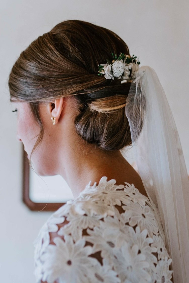 Le peigne de fleurs Minthé, comme tous nos accessoires de la mariée, est confectionné minutieusement à la main en France, en Provence, à partir de fleurs stabilisées et séchées, ces dernières provenant de producteurs français passionnés et spécialisés.