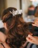 Un des avantages du peigne de mariée Aster est qu’il peut s’adapter à un grand nombre de coiffures, aussi bien sur des cheveux détachés, posé sur le haut arrière de la tête, que sur un chignon en le consolidant.