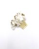 Un des avantages du peigne en fleurs dorées Aura mini est qu’il peut s’adapter à un grand nombre de coiffures, aussi bien sur des cheveux détachés, posé sur le haut arrière de la tête, que sur un chignon en le consolidant et le sublimant, mais aussi sur le côté. C’est un très bon choix pour les demoiselles d’honneur souhaitant s’assortir à la mariée qui porterait par exemple une couronne Aura.