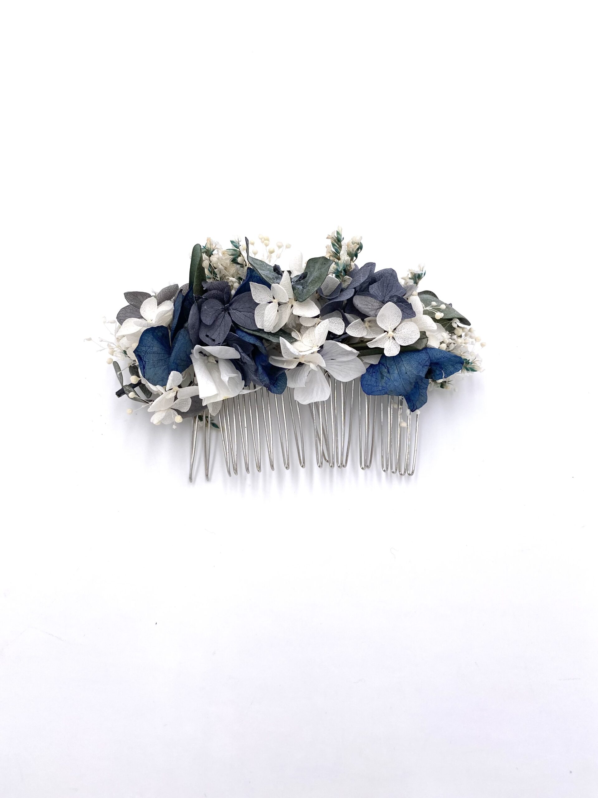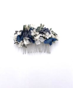Le peigne en fleurs stabilisées Acqua fait partie de la collection Acqua, pour la saison 2022 , une gamme d’accessoires déclinés autour des tonalités rafraichissantes de bleu-vert, à la fois douces et estivales.