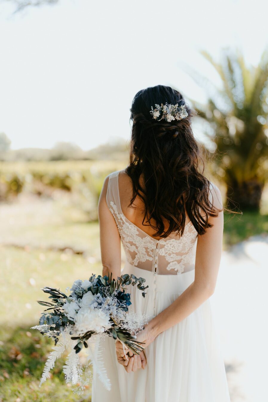 Le peigne, grand classique des accessoires de la mariée contemporaine, est un particulièrement polyvalent, et se combine à merveille avec différents types de coiffures. Aussi bien en chignon flou que classique, ou avec un tresse sur le côté, il peut aussi se porter cheveux mi détachés.