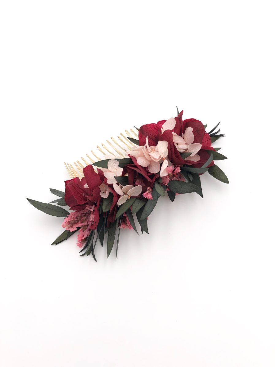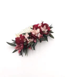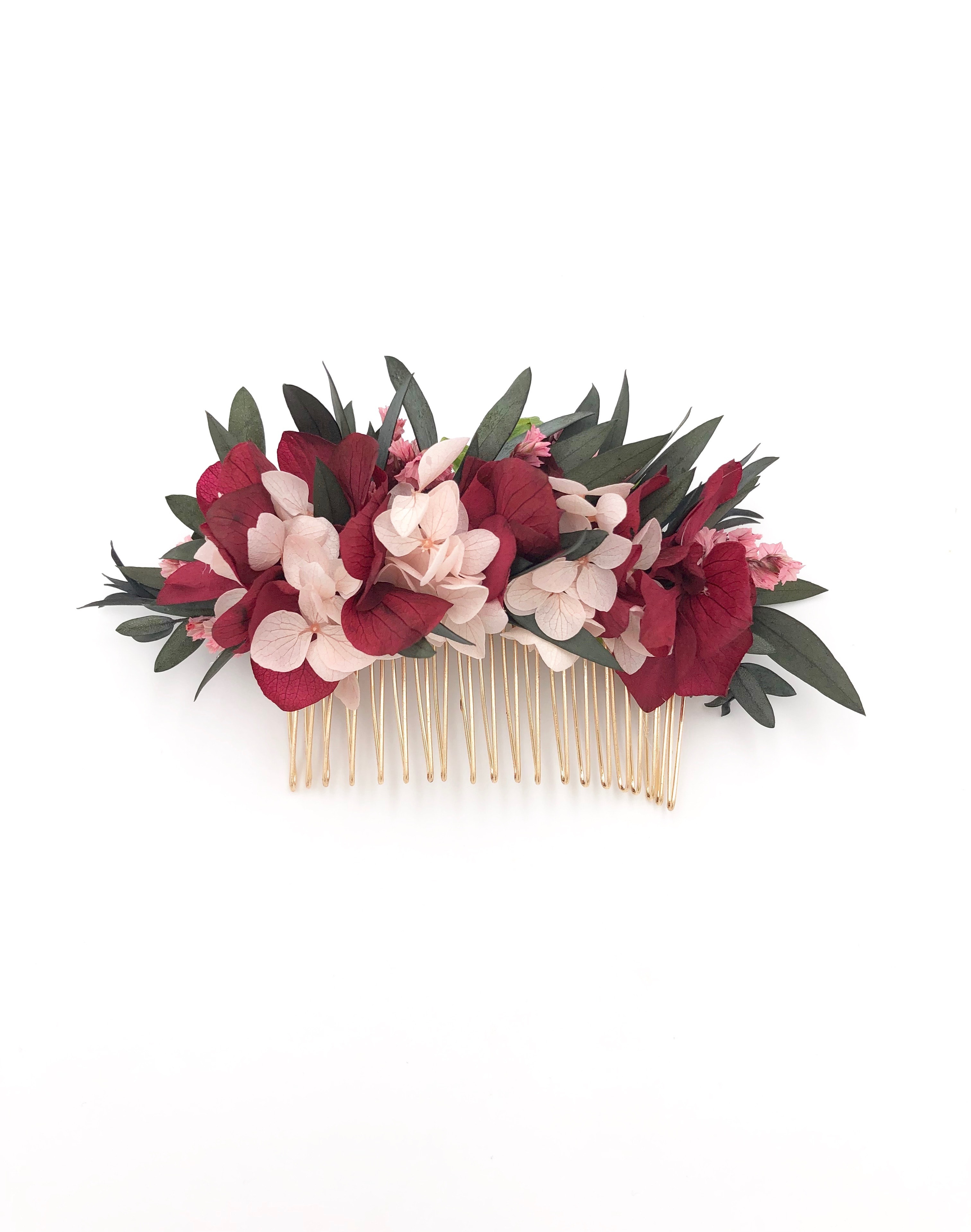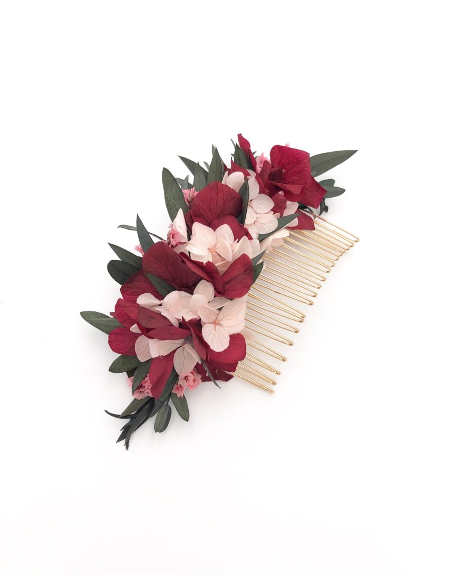 Le peigne en fleurs stabilisées Carmin : le chic pour vos mariages bordeaux
