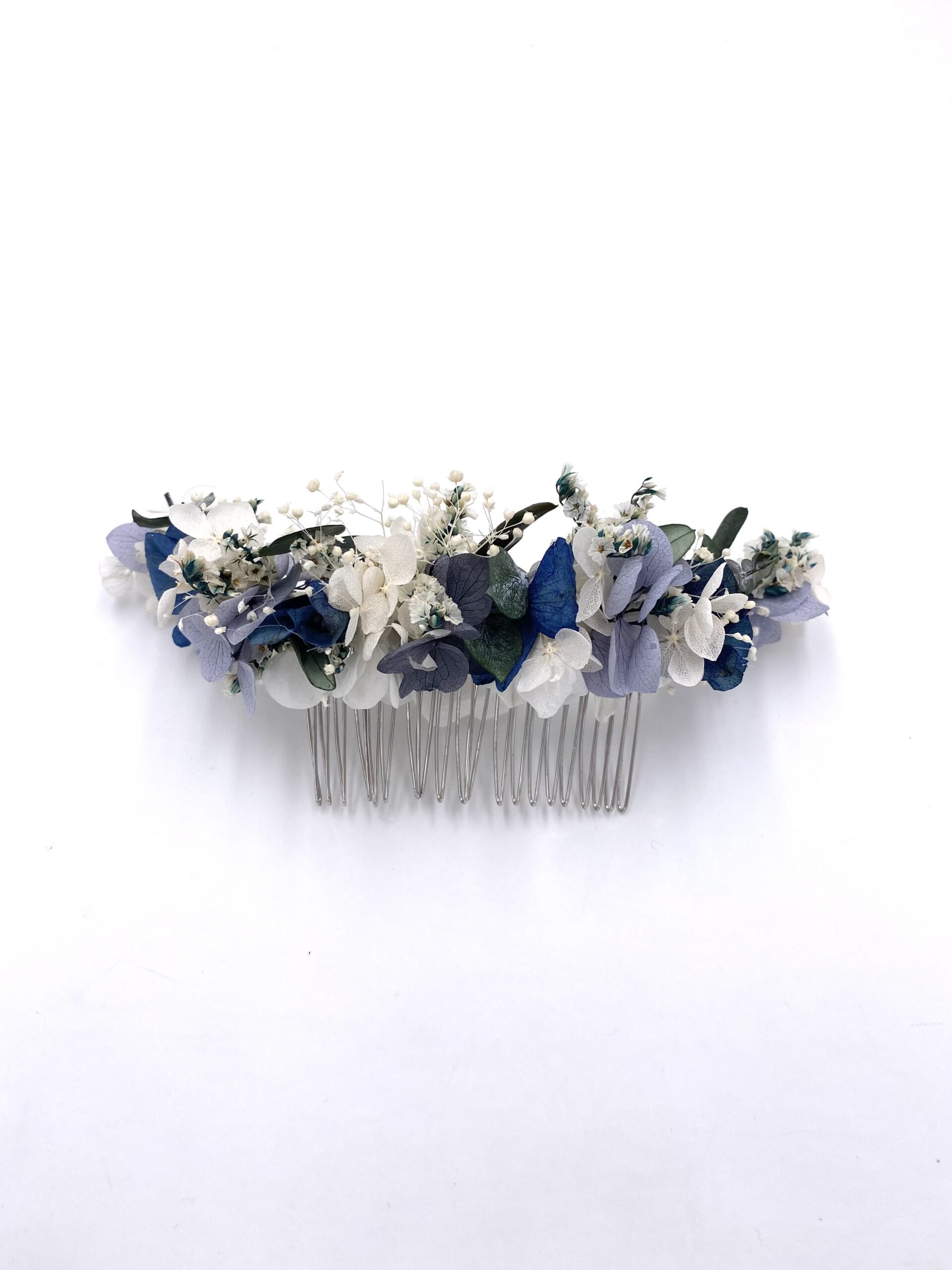 Le peigne long en fleurs stabilisées Acqua : une demie couronne pleine de fraicheur
