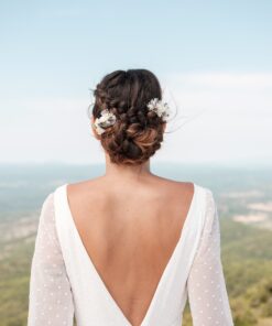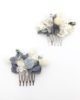 Le peigne fleuri Mini Duo Horizon comprend deux peignes Mini Horizon, dans l’optique de multiplier les combinaisons de coiffure dans l’air du temps. Il est ainsi possible de poser les peignes de chaque côté d’un chignon, ou encore d’en porter un à l’avant et l’autre à l’arrière de votre coiffure. Vous pourrez ainsi laisser libre cours à votre imagination et concevoir votre propre coiffure de mariage fleurie.