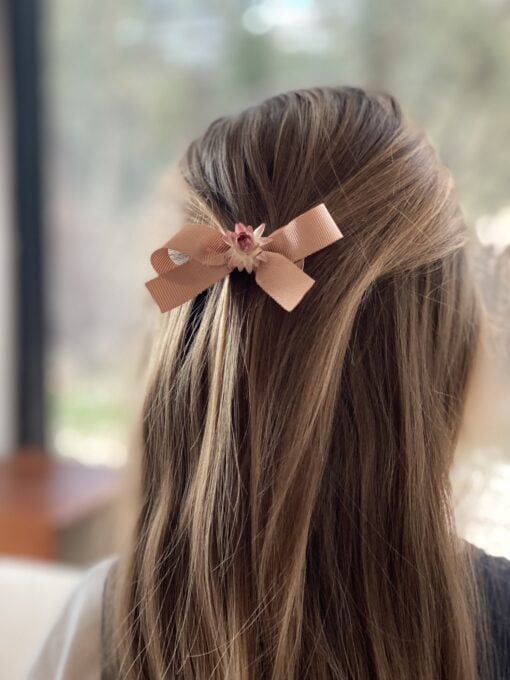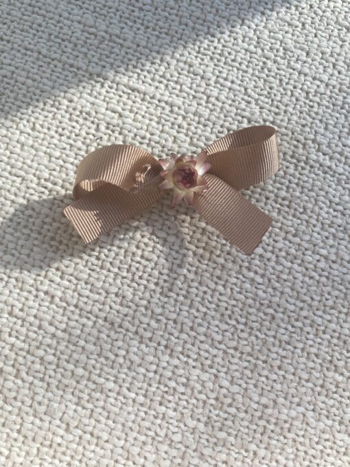 Découvrez notre petite barrette nœud Fleur de Paille. Nous avons voulu revisiter le petit nœud classique de petite fille en y ajoutant une touche de fleurs !