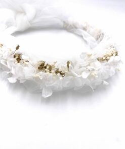 - Composée de fleurs stabilisées (hortensias blancs)