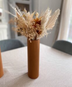 La taille petite, de 15 centimètres de diamètre, qui vient dans sa petite boite cadeau et devient une jolie attention pour une jeune maman par exemple, ou une férue de déco intérieure et de fleurs séchées et stabilisées. Dans ce cas, c’est un cadeau agréable et original, à la fois naturel et durable, dans une version plus moderne que les couronnes de fleurs séchées à 100%.