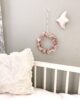 Pour un cadeau de naissance traditionnel, la petite couronne de décoration Guimauve pourra convenir à des filles, mais son style coloré sera aussi adapté à tout type d’utilisation en tant qu’élément mural de décoration naturelle.