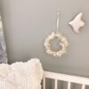 La petite couronne Guimauve est une alternative à notre mini couronne de déco murale Nuage, d’un diamètre plus petit, qui sera plus adaptée pour des espaces plus grands à habiller par exemple. Mais il pourra être élégant de fixer ces deux types de couronnes au même mur, à proximité.