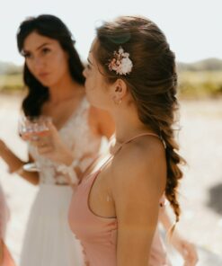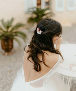 C’est un accessoire qui séduit par son côté pratique : petite touche fleurie plate, elle est idéale pour habiller le côté d’une coiffure par exemple. C’est une alternative intéressante au mini peigne.