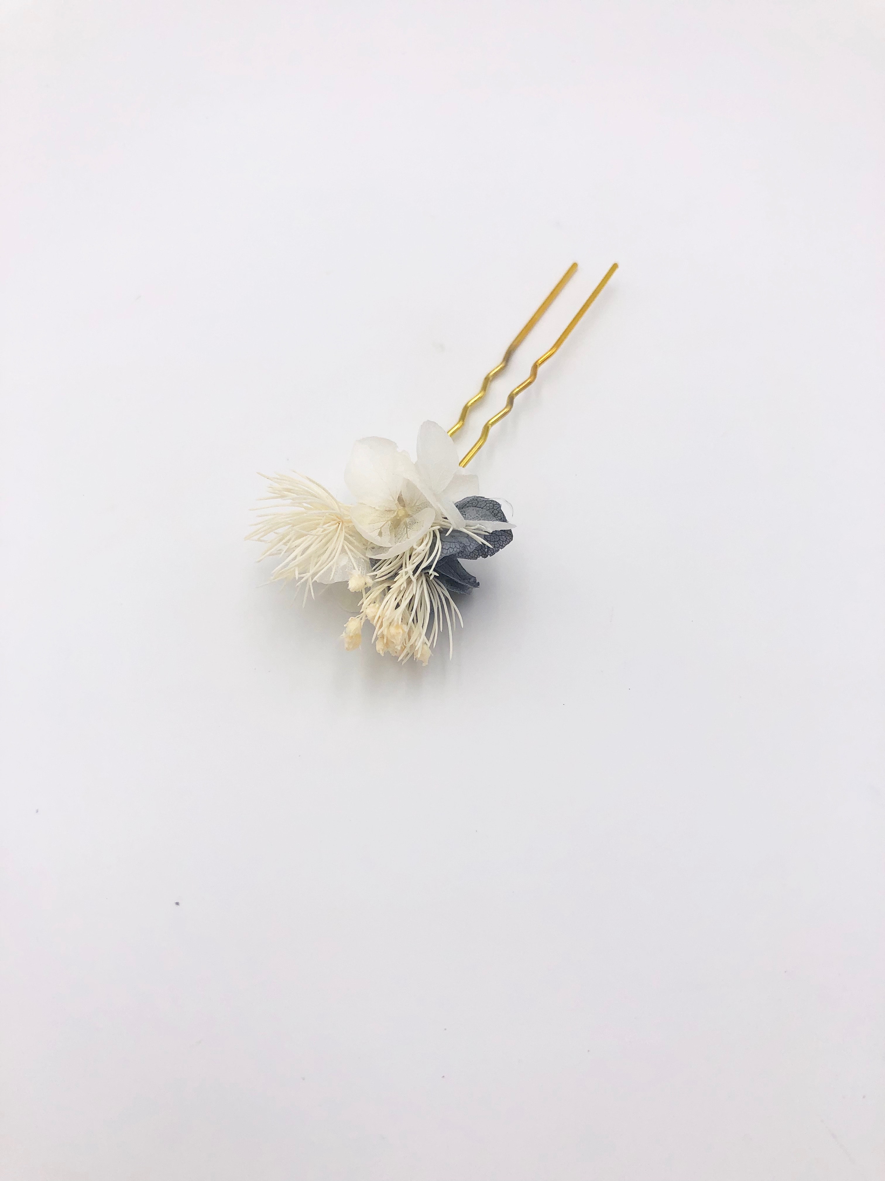 Ce pic à cheveux qui rassemble différentes fleurs stabilisées de la gamme Horizon a été conçu comme un accessoire résolument contemporain et sophistiqué, qui permet de laisser libre cours à votre imagination en matière de coiffure et de bijou de mariage en fleurs. C’est l’une des deux versions des pics à cheveux de mariage de la gamme Horizon, avec le pic à cheveux Craspedia, qui existe en bleu et en blanc.