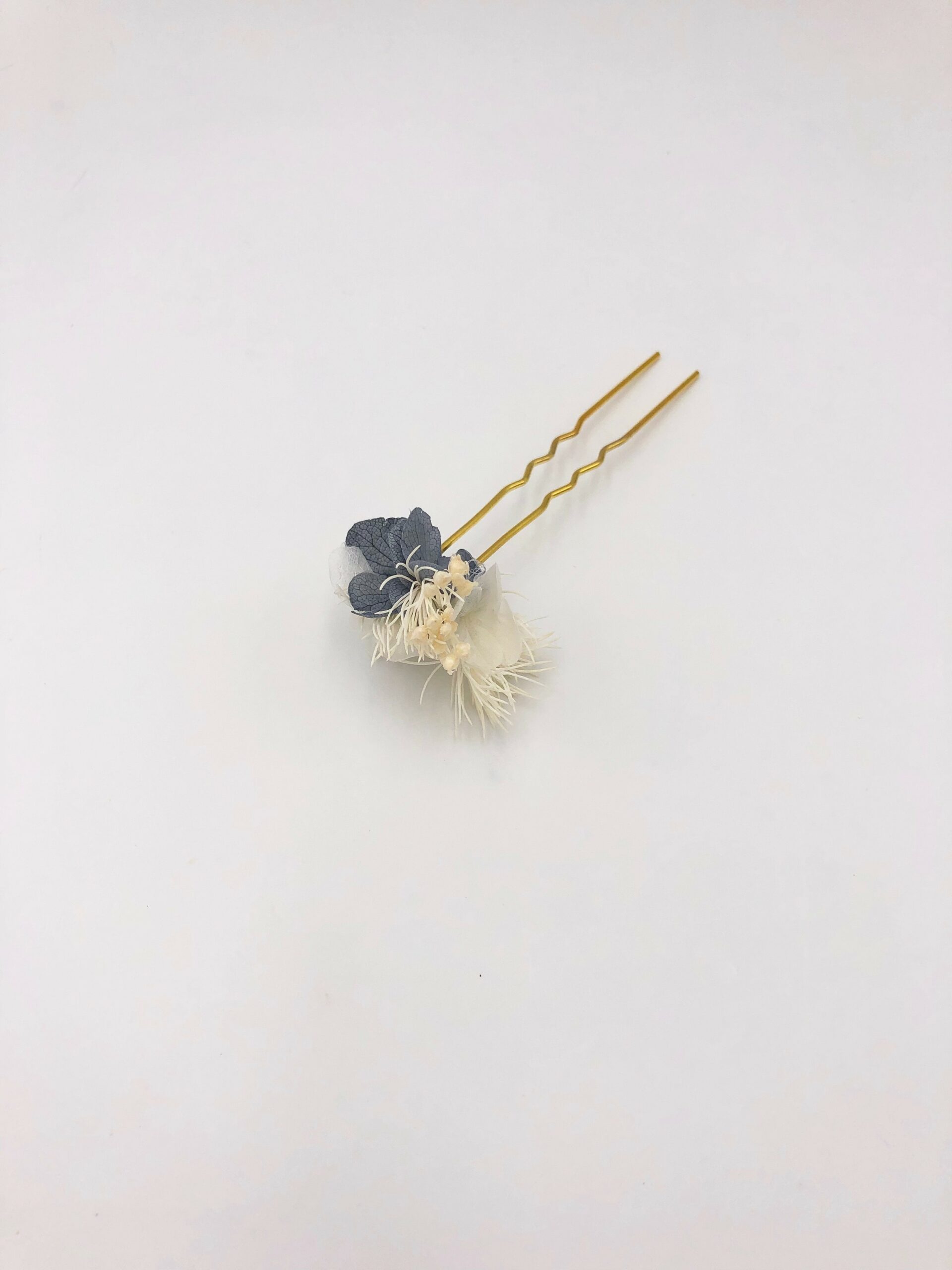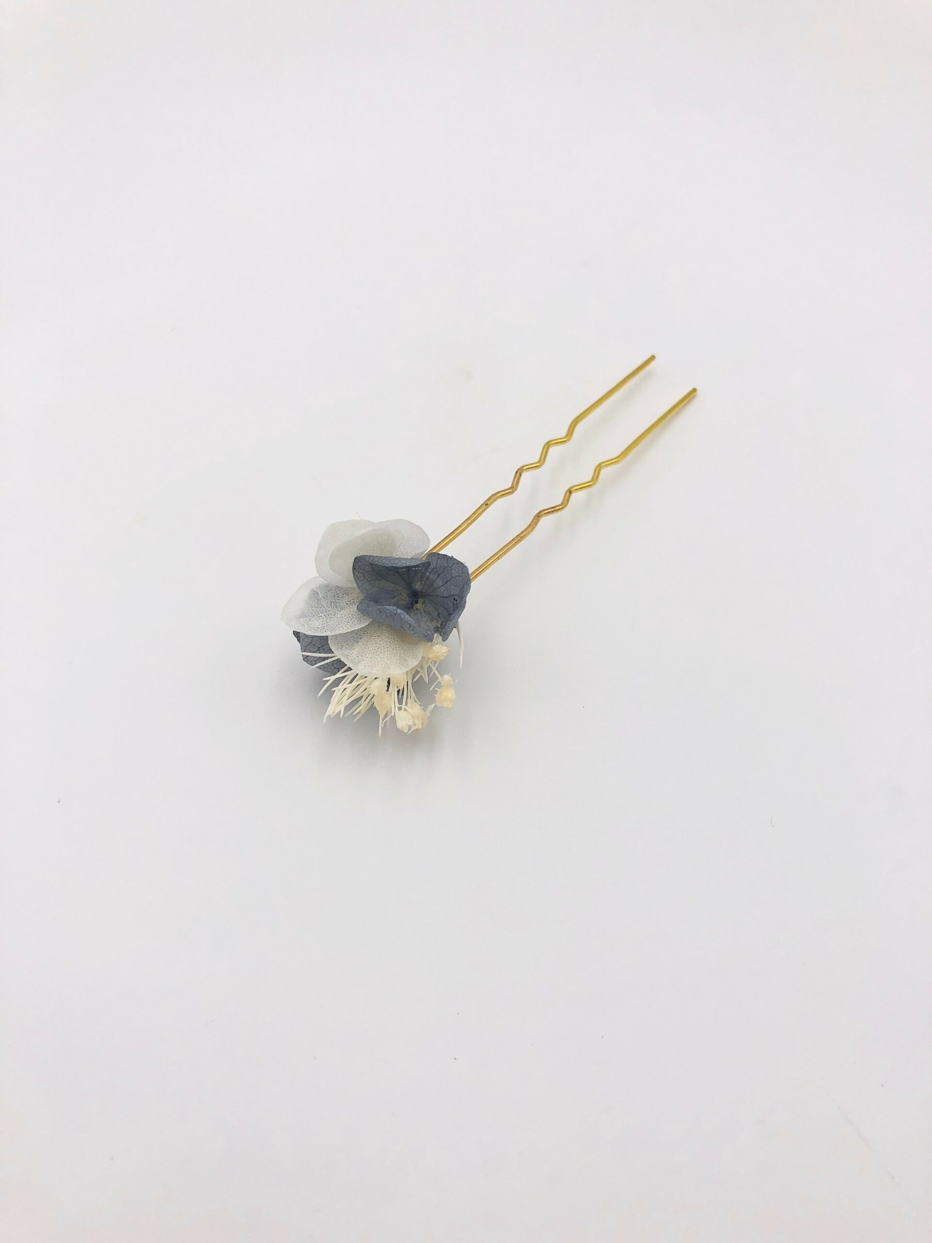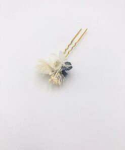 Ce pic à cheveux qui rassemble différentes fleurs stabilisées de la gamme Horizon a été conçu comme un accessoire résolument contemporain et sophistiqué, qui permet de laisser libre cours à votre imagination en matière de coiffure et de bijou de mariage en fleurs. C’est l’une des deux versions des pics à cheveux de mariage de la gamme Horizon, avec le pic à cheveux Craspedia, qui existe en bleu et en blanc.