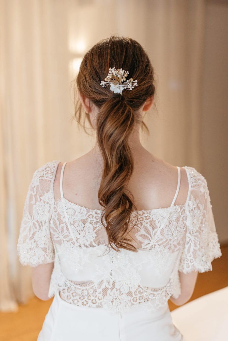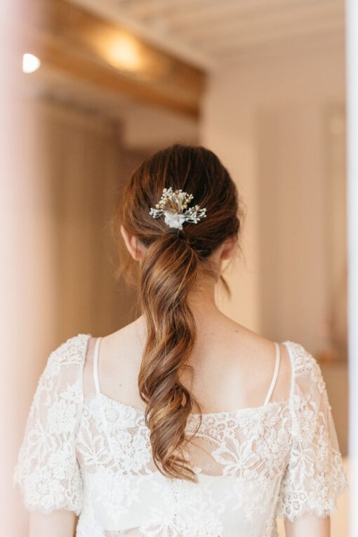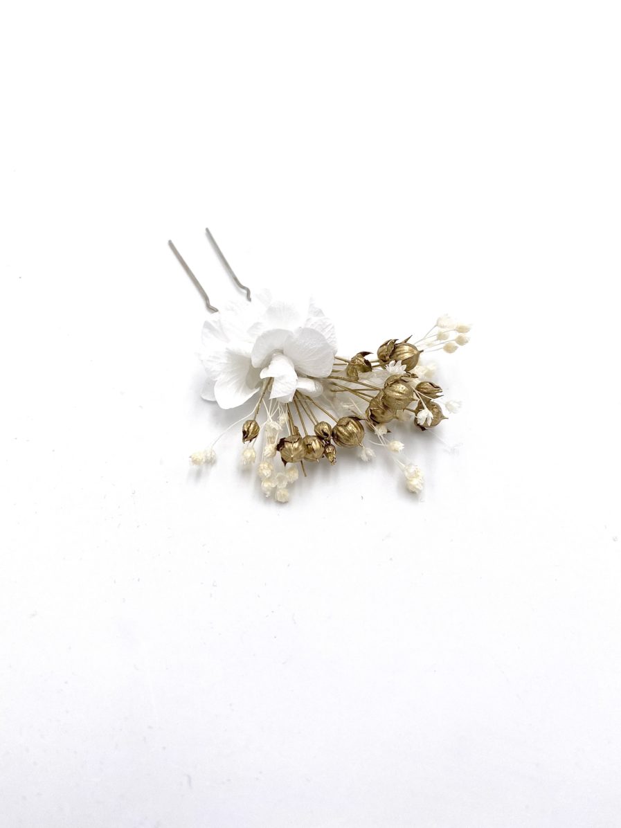 - Broche plate, se fixe facilement (chignon, ou côté)