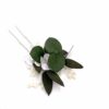 Le grand pic de demoiselle d’honneur Minthé fait partie de la gamme Minthé et de la collection Végétale. C’est un accessoire qui se veut très frais et élégant, combinant le vert doux de l’eucalyptus baby blue avec l’ivoire des immortelles séchées, le blanc immaculé de petits pétales d’hortensia stabilisée et l’éclat de quelques billes de lin séché doré. Cet accessoire de mariage est une broche de type pic à cheveux classique permettant une pose facile, et un effet fleuri discret et élégant.