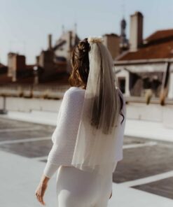 Le voile fleuri offre la possibilité aux mariées élégantes d’associer un accessoire de cheveux délicat à un voile léger et fluide, permettant de le fixer facilement au chignon.